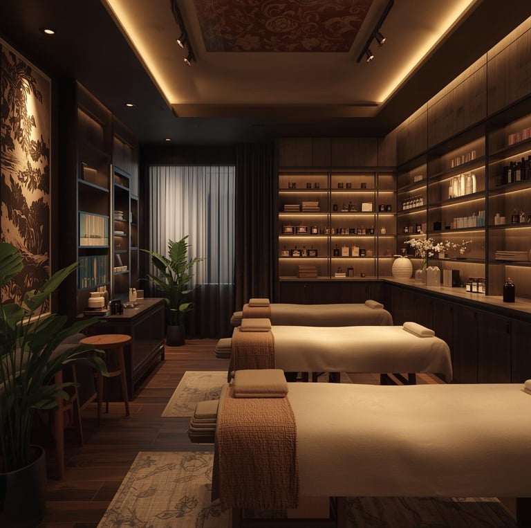 고급스러운 마사지 공간과 다양한 테라피 모습